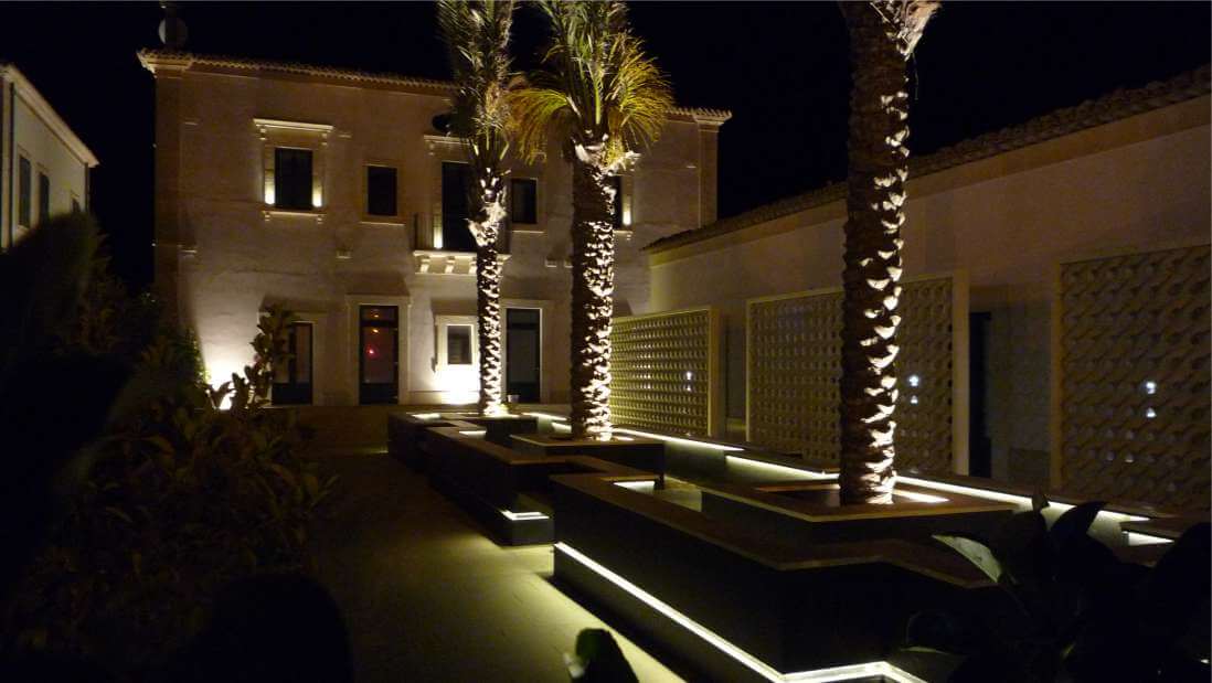 A Donnalucata davanti al porticciolo di pescatori sorge Zafran Hotel. Dalla ristrutturazione di un antico palazzo nobiliare prende forma una delle strutture più affascinanti della costa ragusana. Pensato e realizzato in uno stile arabeggiante La Luce in questo progetto grazie all’illuminazione non ha soltanto valorizzato e messo in risalto le forme architettoniche particolari ma ha progettato fasci di luce che richiamano lo stile orientale anche sulle pareti non strutturate e conformate a questo stile, creando archi di luce anche dove questi non esistevano.
