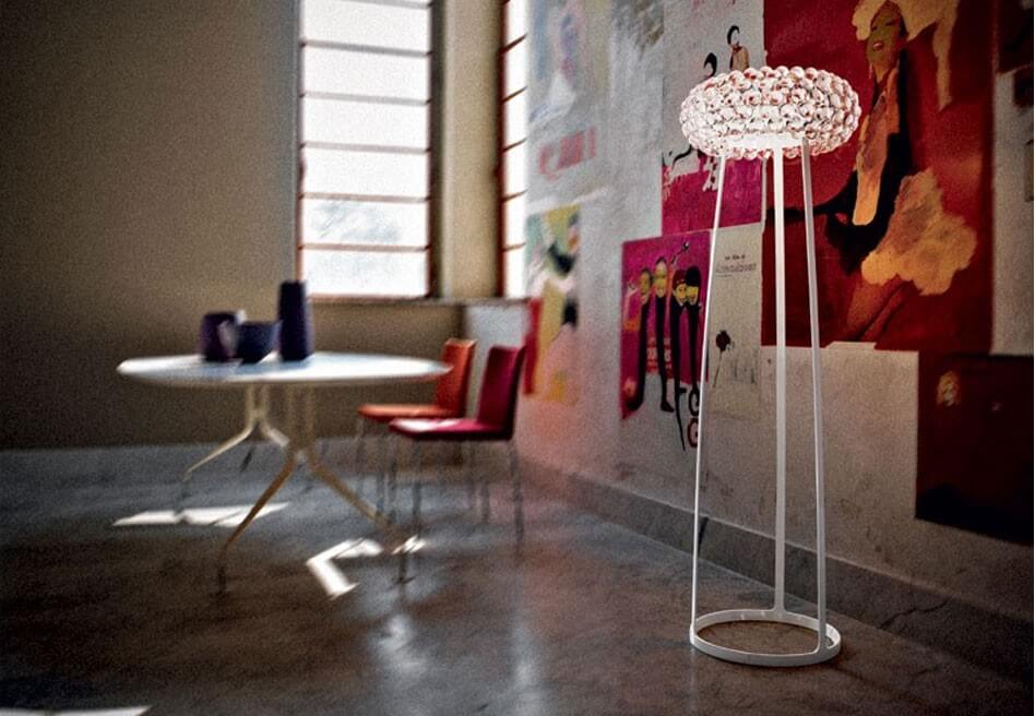 When it is turned on, the light diffuses from inside the spheres like lots of bright crystals, providing 360° lighting of the surrounding environment and guaranteeing direct lighting on the underlying surface and re8ection on the ceiling. This lighting emotion is also vouched by Led versions –affording high energy efficiency levels and durability – completely re-engineered in terms of lighting technology especially to ensure the same intensity, diffusion and temperature as the light produced by the original version.