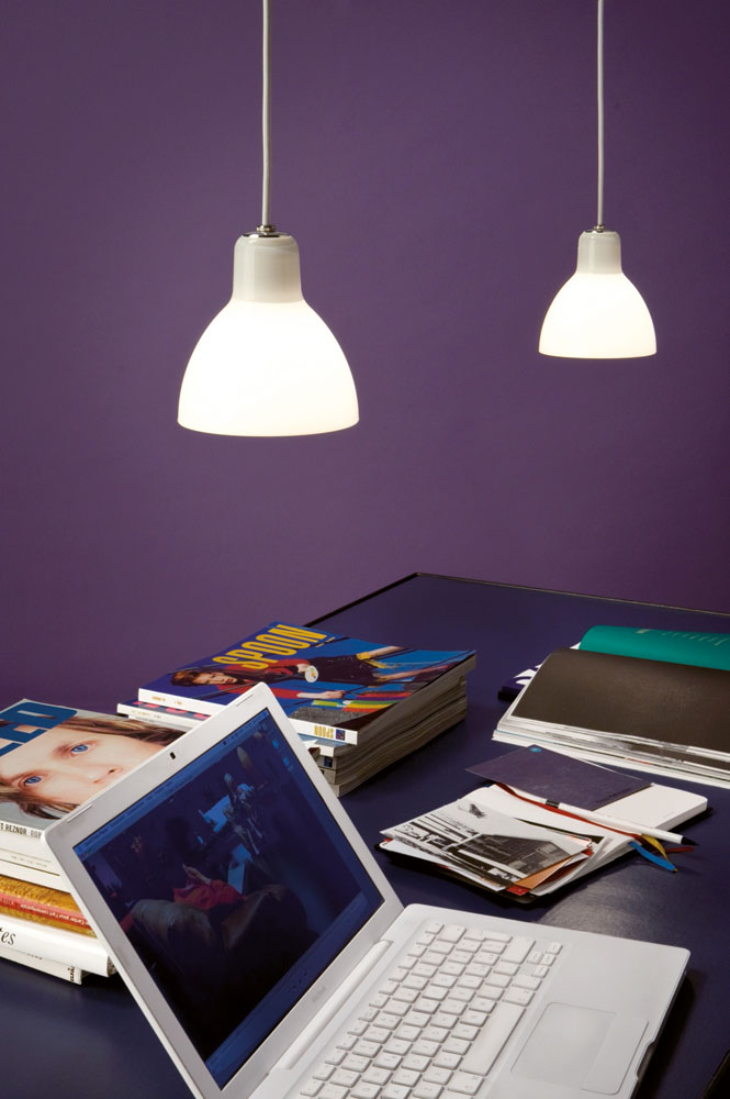 Luxy è una lampada “classica”, concepita come l’evoluzione degli apparecchi tecnici a bracci snodati. L’impiego di un diffusore in vetro trattato con vernici colorate permette di ottenere un’emissione di luce diretta e diffusa, con tonalità cromatiche calde ed eleganti.