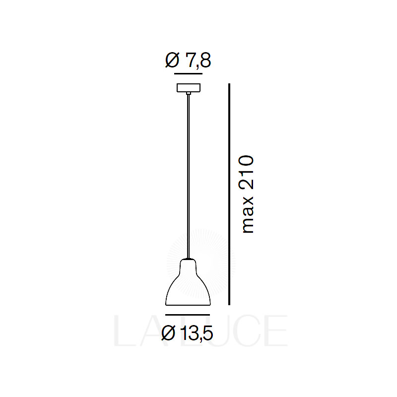 Il diffusore è disponibile in cinque colori: bianco lucido, bianco acidato, nero lucido, rosso lucido, giallo lucido. Il cavo in tessuto è disponibile nei colori: bianco, nero o rosso.Sorgente luminosa: 1 x E14 LED