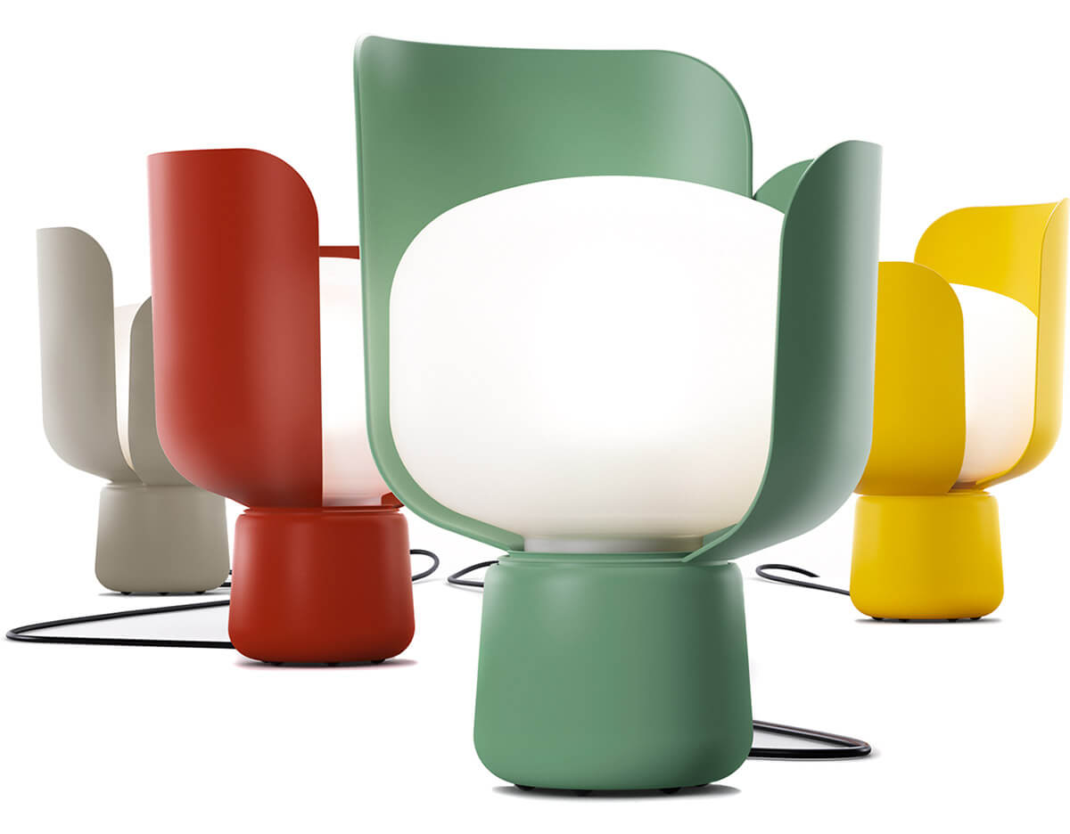 Blom è una lampada da tavolo di piccole dimensioni disegnata da Andreas Engesvik, designer norvegese, affermatosi nelpanorama internazionale per la sua capacità di trasferire in oggetti di uso quotidiano emozioni, suggestioni, idee.Di minimo ingombro, è alta 24 cm con un diametro di 15 cm, Blom è un apparecchio luminoso leggero e divertente, che sipresta ad essere maneggiato, spostato e adattato alle esigenze dell’utilizzatore.Il nome, la contrazione del termine blomst, fiore in norvegese, deriva dalla forma della lampada che, dotata di pale simili apetali, ricorda appunto un fiore. La quantità di luce è regolabile grazie ai due petali che avvolgono dolcemente il diffusoree che ruotando sulla base, consentono di schermare il flusso luminoso, personalizzandolo a seconda delle esigenze: con ipetali allineati, l’emissione di luce è massima.La lampadina, fluorescente compatta, garantisce una buona efficienza luminosa a un basso consumo energetico.La base in metallo assicura stabilità alla lampada; a lampada accesa, i petali in policarbonato, mantengono una temperaturache consente l’interazione senza il rischio di scottature.Blom è un oggetto che si adatta perfettamente al vivere contemporaneo, che si trova a suo agio sia su un tavolino dasoggiorno così come su un comodino.