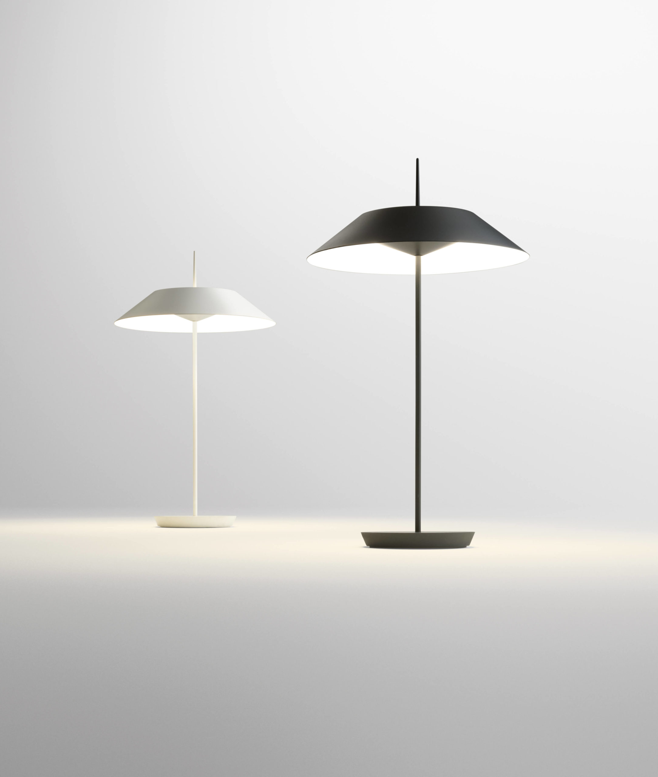Vibia presenta un modello di lampada da tavolo disponibile in 6 finiture diverse. È regolabile mediante sensore ottico.