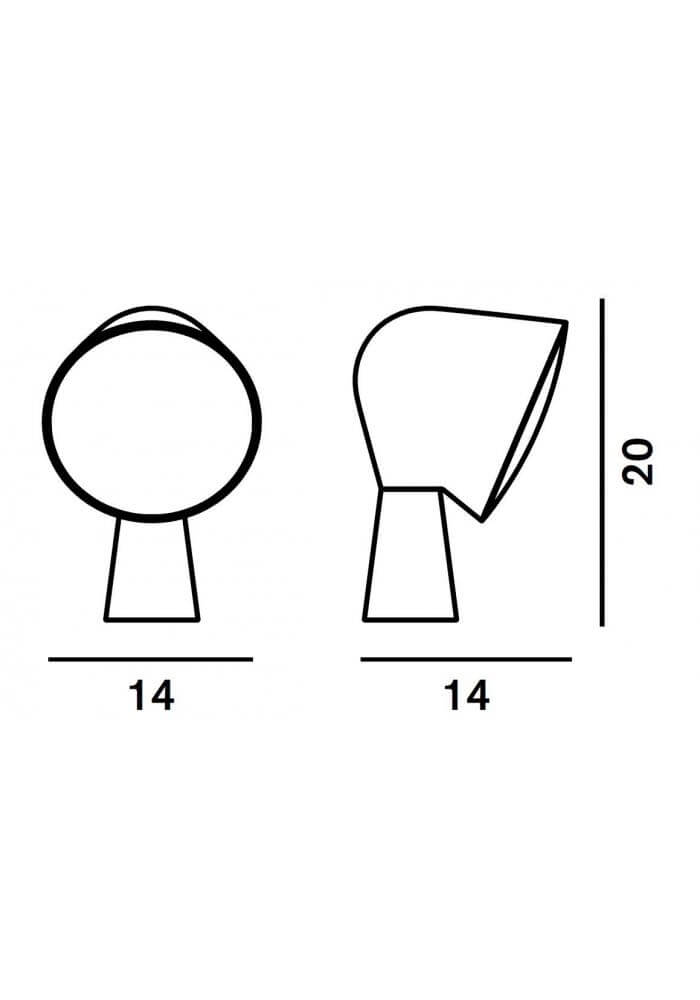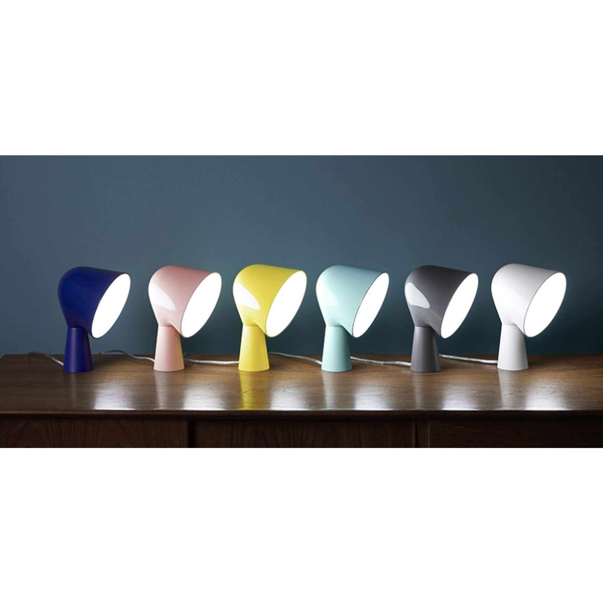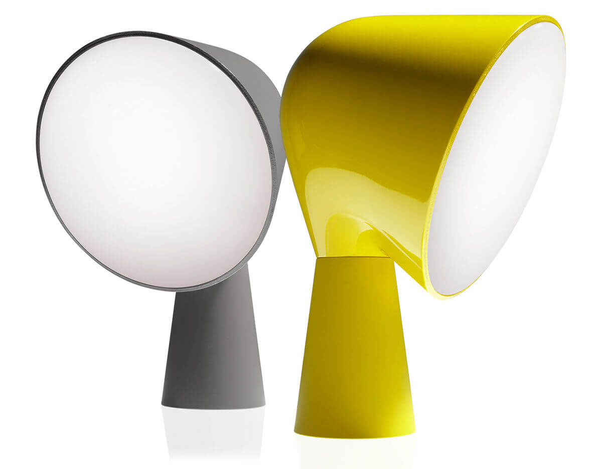 Table lamp with ABS base and polycarbonate projector. Available in six different colours, Binic is suggested as a “take away” object – a present.