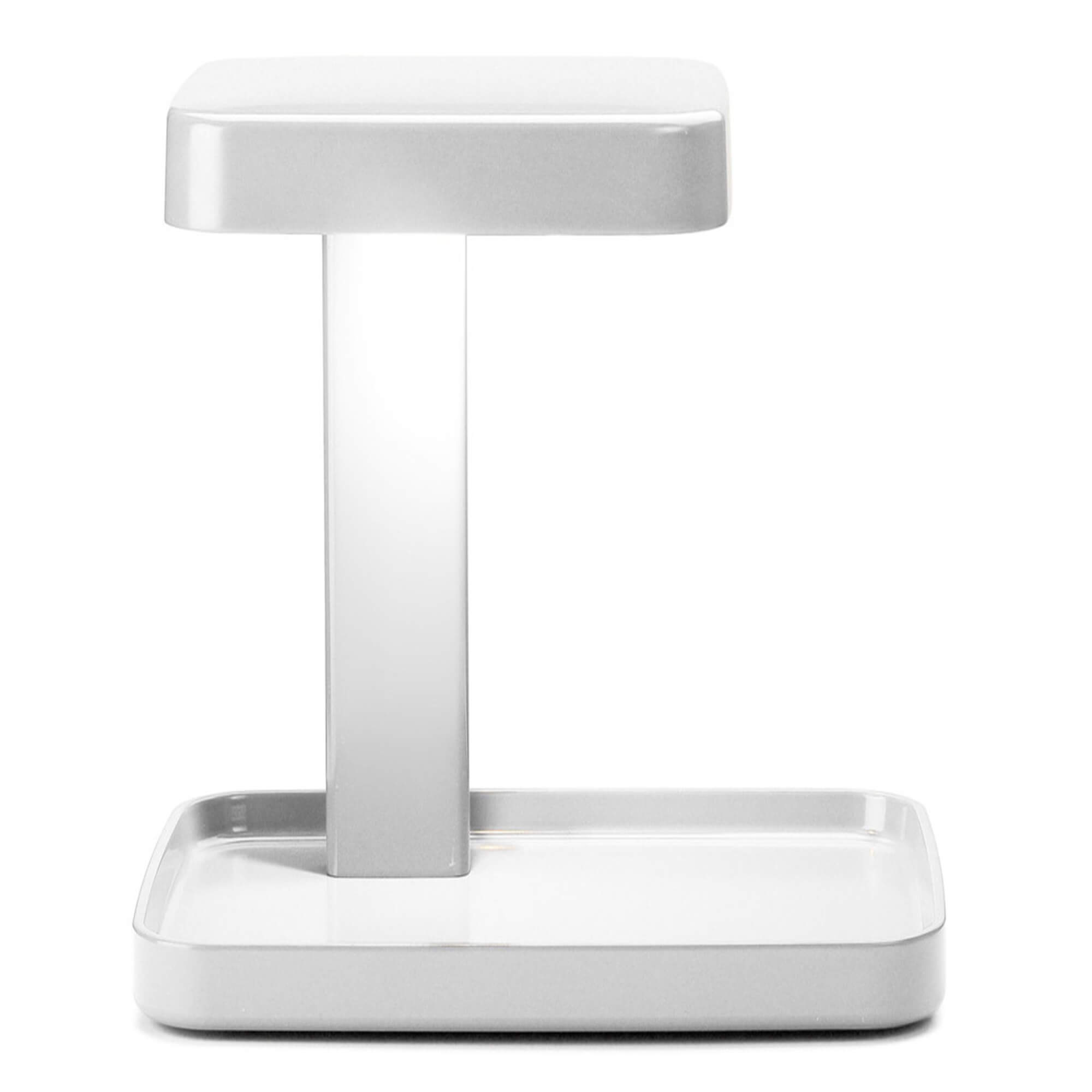 “The Piani collection is made up of a flat base and a flat top. The base is either a tray so that objects can be displayed in a triangular beam of light as if they were on stage. Piani comes in plastic as well as in oak wood and basalt stone, so that different sensual experiences are suggested ”.
