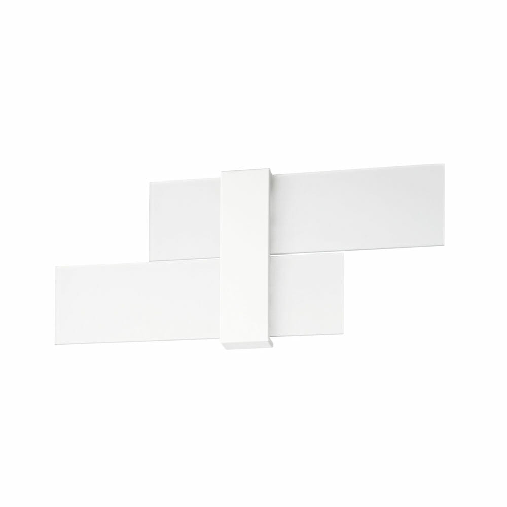 Double emission wall lights for indoor application. The warm white LED light source with a general lighting light distribution is composed of 24 topled LEDs with CCT of 3000 K and a CRI 80; the source luminous flux is 1251 lm, with a 104.3 lm/W nominal luminous efficacy and an operating lifetime (L70) of 72.5000 hours. The device body is made of iron and features a embossed white ral 9003 finish, processed by means of coating; the diffuser is made of glass with a sandblasting treatment; the mounting frame is made of iron, with a embossed white ral 9003 finish, processed by means of coating. The ingress protection degree is IP20; the total weight is of 1.204 kg. The total absorbed power is 12 W.